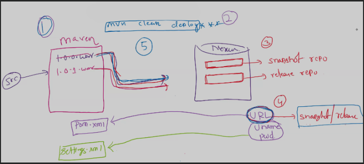 –> the maven automatically pushes it to the snapshot repo –> if you want push release repo, remove -SNAPSHOT
